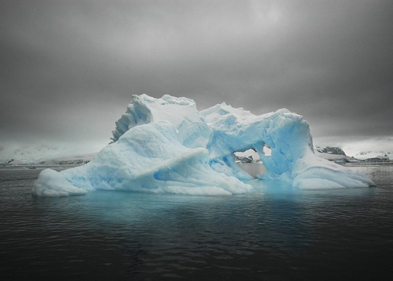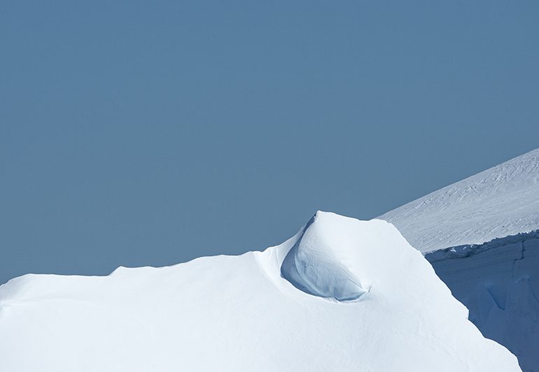 Polar ice is sculpted by the hands of nature. Extreme cold, Katabatic winds, the earth’s most turbulent oceans—all brutalize, manipulate, caress and transform each and every unique piece of ice-art—pinnacled, tabular, brash or glacial—into works of beauty that lie in wait for only the most adventurous observer. Our imagination can barely fathom the intricate shaping of such elemental beauty, and the way the blue-green light plays so effortlessly through the ice. As one sails the iconic channels and passages, the art forms are delivered in drifting parades of ice, one by one for our fleeting enjoyment. It is a study in impermanence and I am honoured to capture this disappearing art form before she leaves the planet.